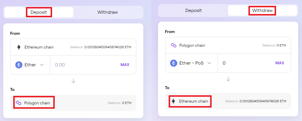 Uma vez conectado, pode-se visitar qualquer dApp Polygon disponível . Por fim, para transferir criptomoedas ou NFTs da Ethereum para a Polygon e vice-versa, você deve visitar a Polygon Bridge, usando a carteira MetaMask para conectar os fundos. Enviar criptos para o Polygon significa depositá-los, enquanto enviar ativos para o Ethereum significa retirá-los.